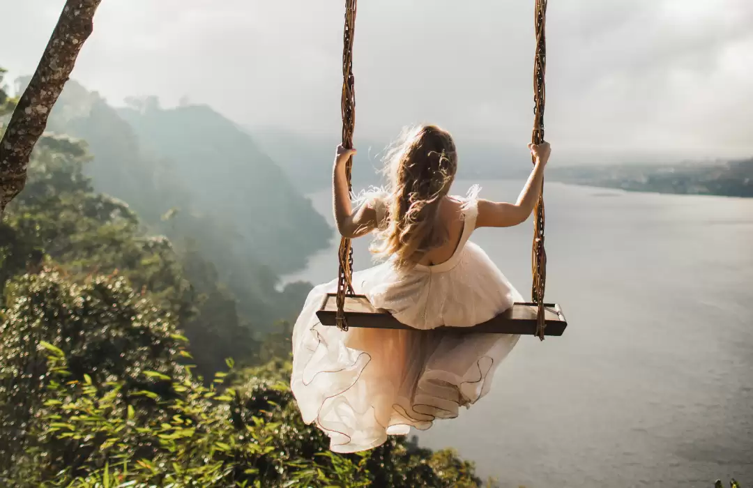 Wanagiri Hidden Hill, located near Lake Buyan in northern Bali, offers breathtaking panoramic views and unique photo opportunities. Visitors can pose in heart-shaped frames, swings, and bird-nest platforms, all overlooking the twin lakes and lush forests, making it a serene spot for nature lovers and photographers.