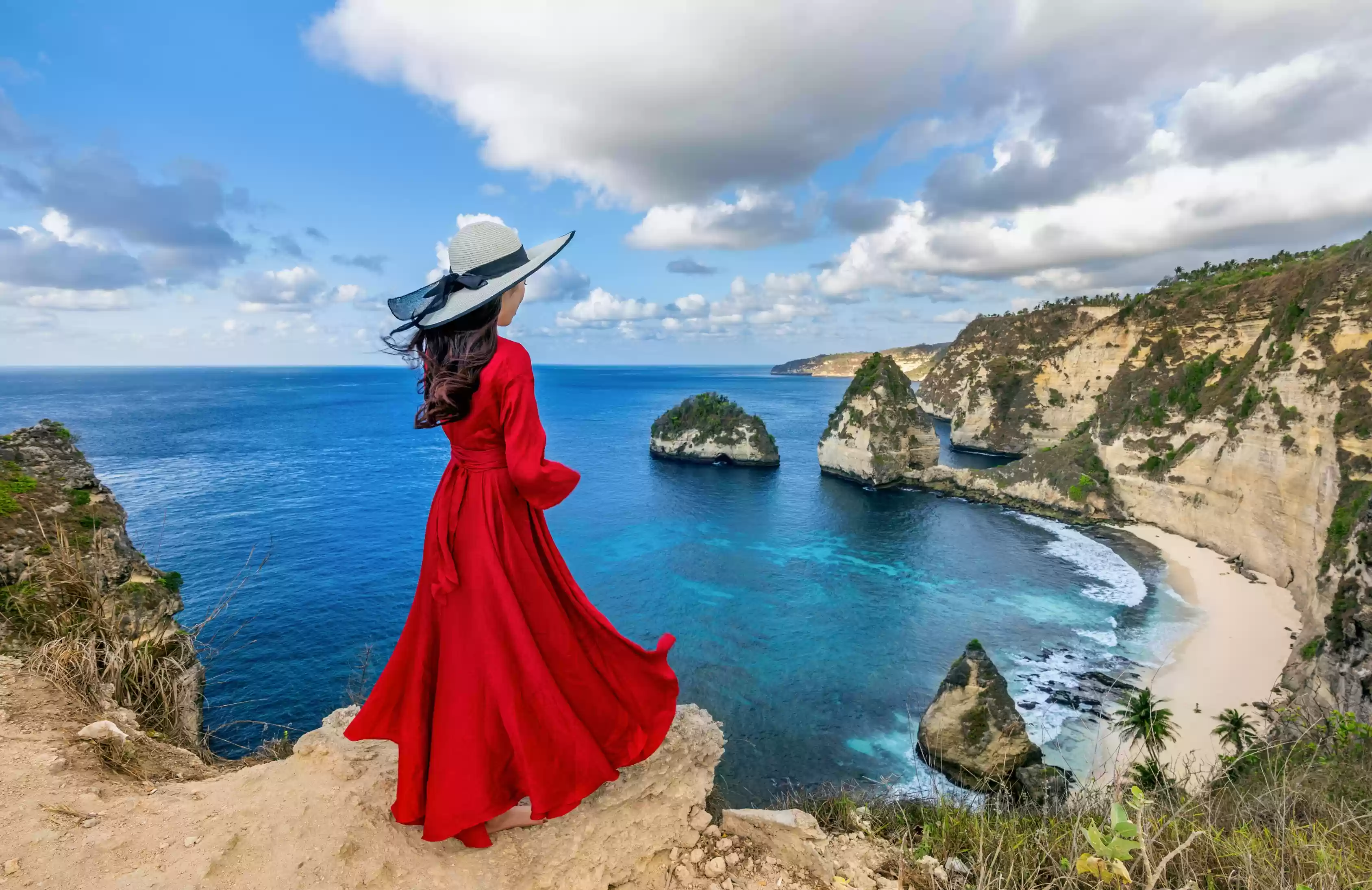 Nestled in a remote part of Nusa Penida, Atuh Beach boasts a stunning landscape with crystal-clear waters, white sand, and jagged cliffs. It’s a peaceful spot, ideal for swimming and relaxing, with a dramatic backdrop perfect for photos.
